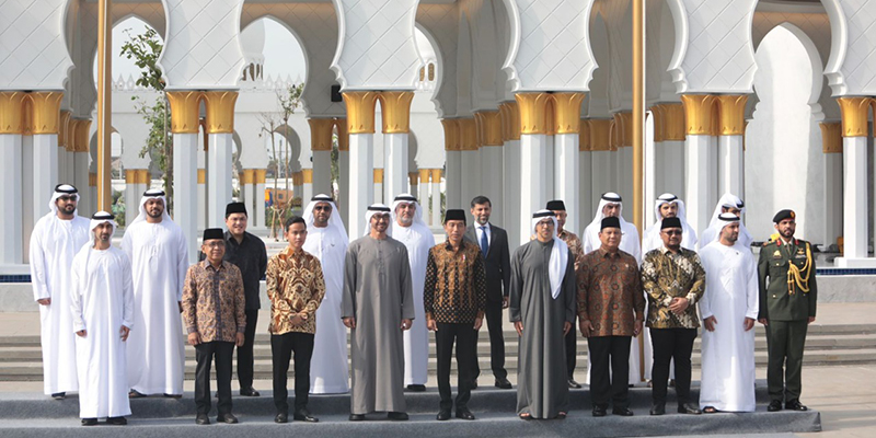Saat tiba di Masjid, Prabowo bersama Jokowi dan Presiden MBZ melaksanakan salat sunah Tahiyatul Masjid terlebih dahulu. Kemudian, kedua kepala negara melakukan penandatanganan prasasti sebagai tanda peresmian masjid.