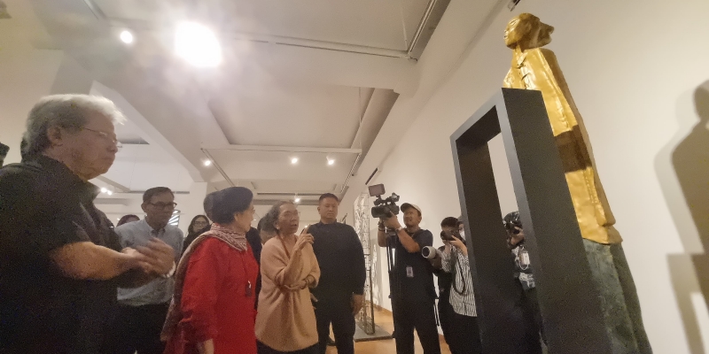 Megawati juga diajak melihat patung karya Dolorosa terbaru. Satu-persatu, Dolorosa menjelaskan filosofi patung buatannya, mulai dari yang berbahan besi, aluminium foil, hingga kayu.