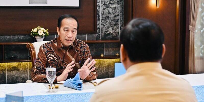 Prabowo dan Jokowi duduk bersama dan berbincang, menikmati hidangan berbuka puasa yang telah disiapkan.