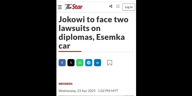 “Dua tuntutan hukum tersebut diajukan di Pengadilan Negeri Surakarta di Jawa Tengah, kampung halaman Jokowi, awal bulan ini dalam kurun waktu kurang dari seminggu,” tulis The Star Online yang dikutip Rabu 30 April 2025.