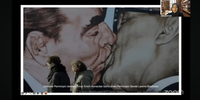 Tak cuma itu, lebih lanjut Milda juga menyebutkan satu mural lainnya yang menunjukkan gambar berciuman dua pemimpin negara berbeda di masa lampau.