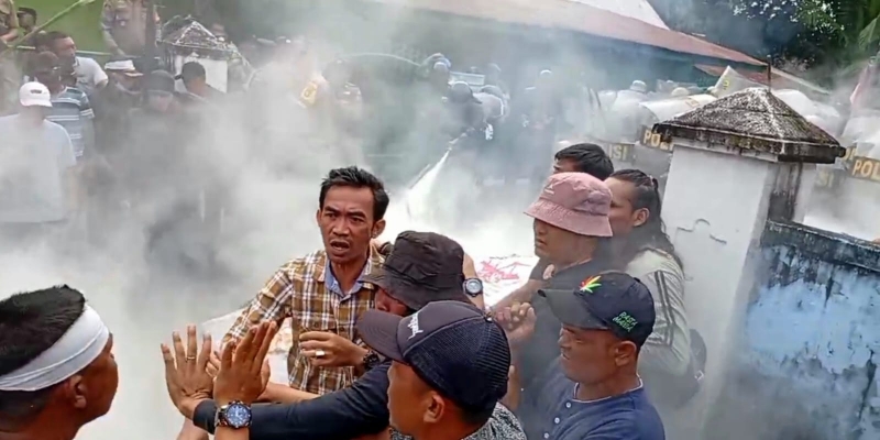 Situasi makin tak terkendali saat aparat kepolisian mencoba membubarkan massa dengan menembakkan gas air mata dan