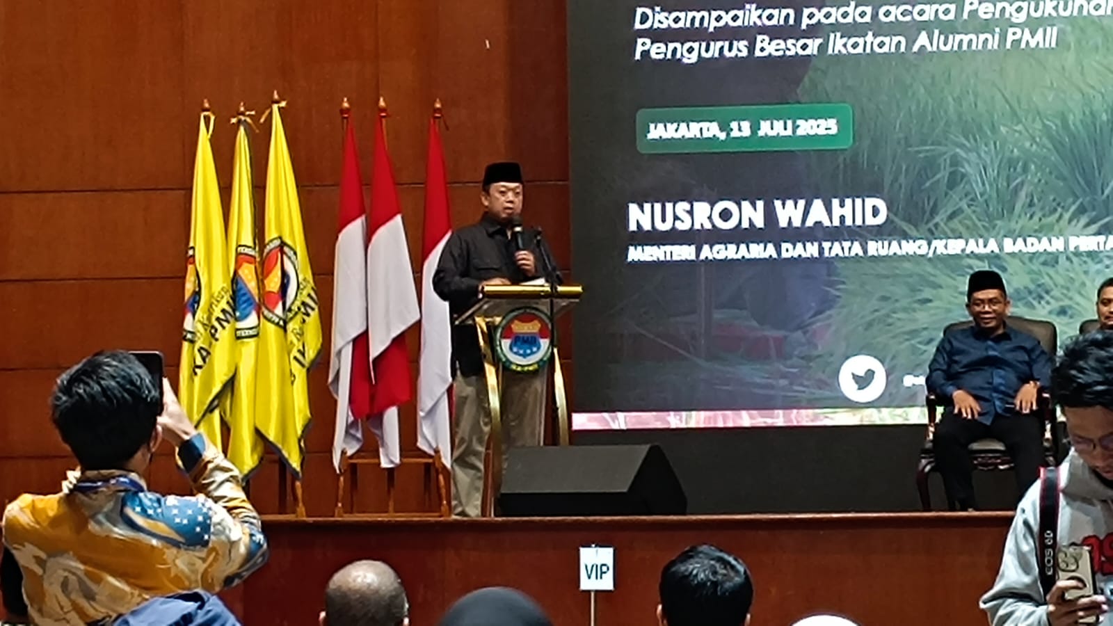 Hal itu diungkapkan langsung Menteri Agraria dan Tata Ruang/Kepala Badan Pertanahan Nasional Nusron Wahid dalam acara Diskusi Publik Sesi II Pengukuhan dan Rapat Kerja Nasional (Rakernas) I Pengurus Besar Ikatan Alumni Pergerakan Mahasiswa Islam Indonesia (PB IKA PMII) yang diselenggarakan di Hotel Bidakara Jakarta, Jakarta Selatan, Minggu, 13 Juli 2025.