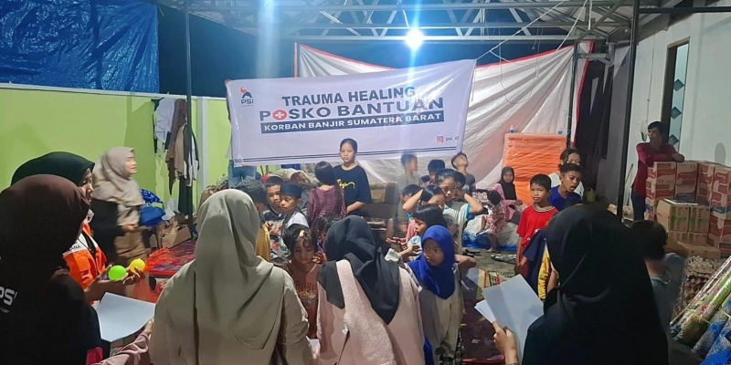 Posko Bantuan Partai Solidaritas Indonesia (PSI), di Belimbing, Kota Padang, fokus kini bergeser ke upaya trauma healing, khususnya bagi kelompok paling rentan yaitu anak-anak korban banjir bandang Sumatera Utara.