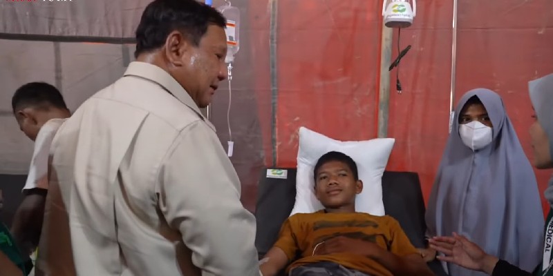Dalam pidatonya, Prabowo menyampaikan apresiasi dan penghormatannya kepada pemerintah daerah dan seluruh unsur yang bekerja keras di lokasi bencana.