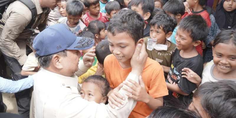 “Pesan saya, anak-anak harus tabah dan tetap semangat. Kita akan bergerak cepat supaya anak-anak bisa cepat kembali sekolah,” ujar Prabowo ketika menyapa para warga di pengungsian.