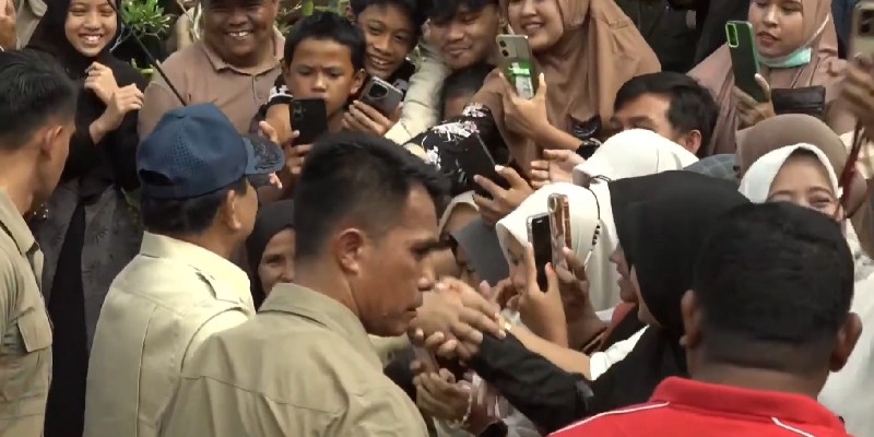 Raut wajah penuh kebahagiaan dan senyum mengembang tampak dari para pengungsi ketika Prabowo menyapa dan menyalami mereka.