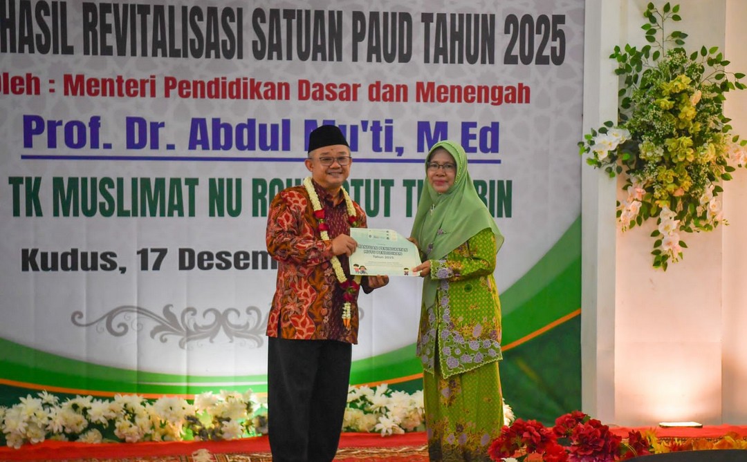 Komitmen itu ditunjukkan dengan peresmian hasil revitalisasi 10 satuan pendidikan di Kabupaten Kudus, Jawa Tengah, Rabu, 17 Desember 2025. Menteri Pendidikan Dasar dan Menengah (Mendikdasmen) Abdul Mu’ti meresmikan langsung salah satunya, TK Muslimat NU Roudlotut Tholibin.