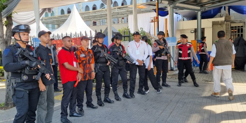 Selain itu, Satuan Brimob juga diterjunkan, lengkap dengan perlengkapan seperti senjata gas air mata.