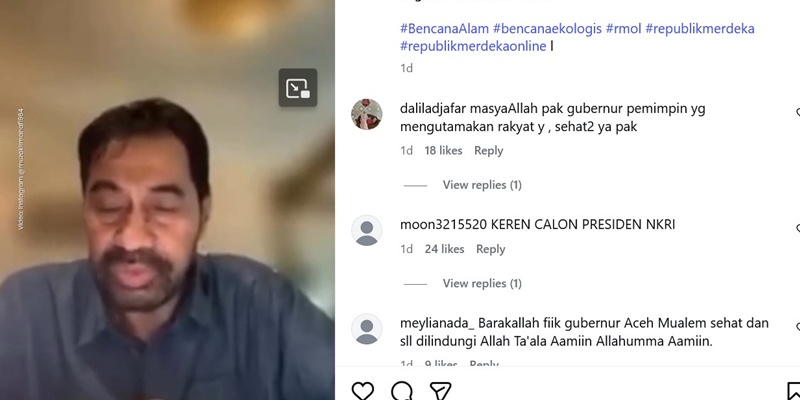 “Barakallah fiik gubernur Aceh Mualem sehat dan sll dilindungi Allah Ta'ala Aamiin Allahumma Aamiin,” tukas akun meylianada_.