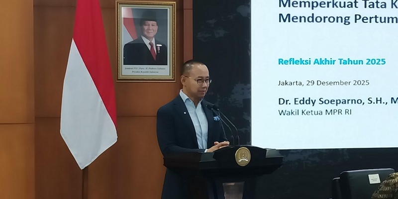 Hal itu disampaikan Wakil Ketua MPR Eddy Soeparno dalam sambutannya di acara Refleksi Akhir Tahun 2025 di Kompleks Parlemen, Senayan, Jakarta, pada Senin, 29 Desember 2025.