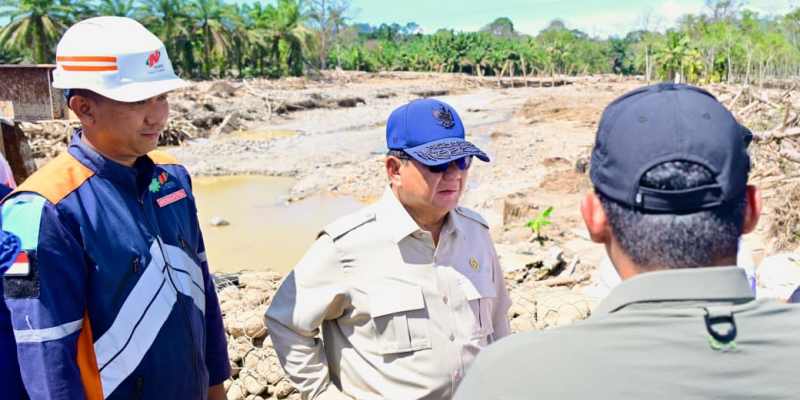 Dalam peninjauan tersebut, Prabowo melihat langsung kondisi permukiman warga, di mana sejumlah rumah mengalami kerusakan cukup parah akibat terjangan banjir dan longsor.