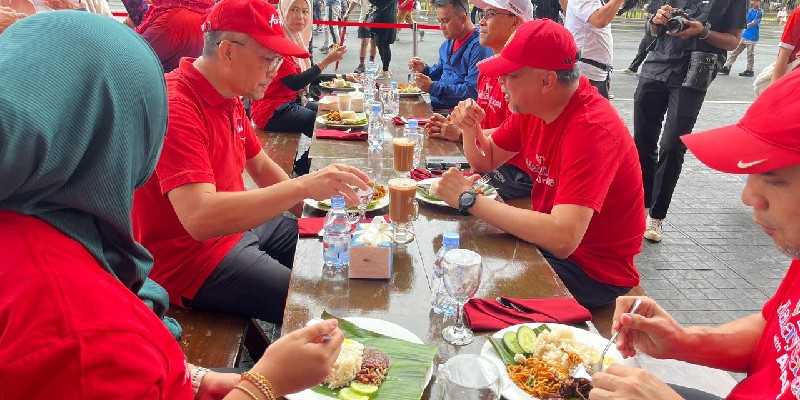 Suasana CFD GBK tampak semarak dengan beragam sajian kuliner khas Malaysia seperti nasi lemak hingga teh tarik yang bisa dinikmati masyarakat secara gratis.