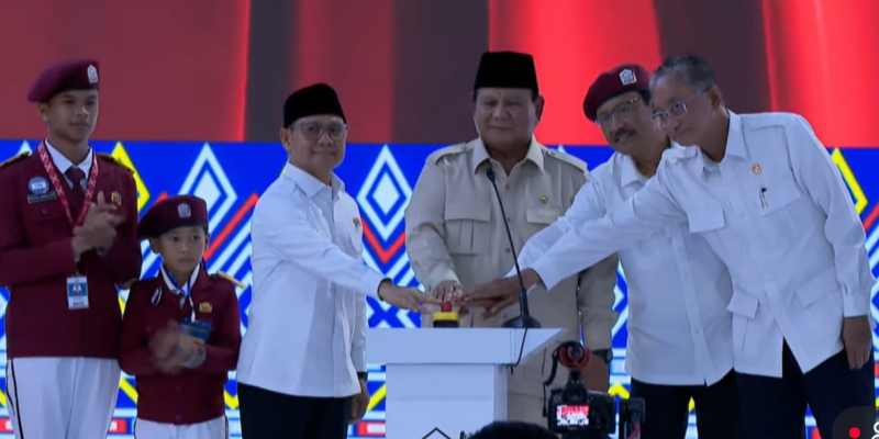 Acara peresmian ditutup dengan simbolis penekanan tombol oleh Presiden Prabowo bersama Menko Pemberdayaan Masyarakat, Mensos, Menteri PU, serta dua perwakilan murid berbaret merah.