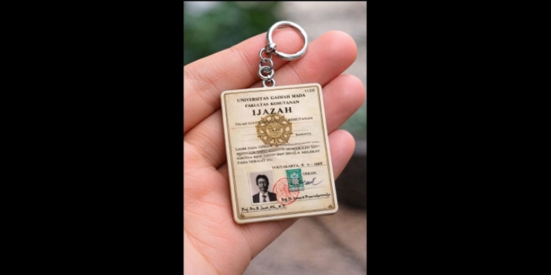 Ijazah Jokowi yang diyakini pakar telematika Roy Suryo 99,9 persen palsu itu kini beredar dalam bentuk gantungan kunci.