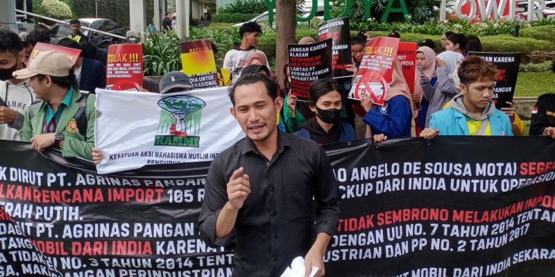 “Mendesak Direktur Utama PT Agrinas Pangan Nusantara, Joao Angelo De Sousa Mota, segera membatalkan rencana impor 105 ribu unit mobil pikap dari India untuk operasional Kopdes Merah Putih,” tegas Koordinator Massa Aksi, Bambang, di sela-sela aksi.