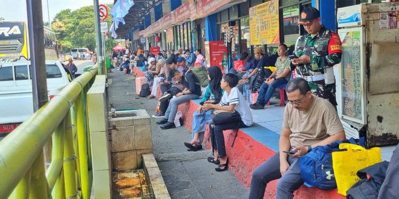 RMOL, para pemudik nampak duduk di bagian luar pintu masuk Terminal Kp. Rambutan sebelah barat.