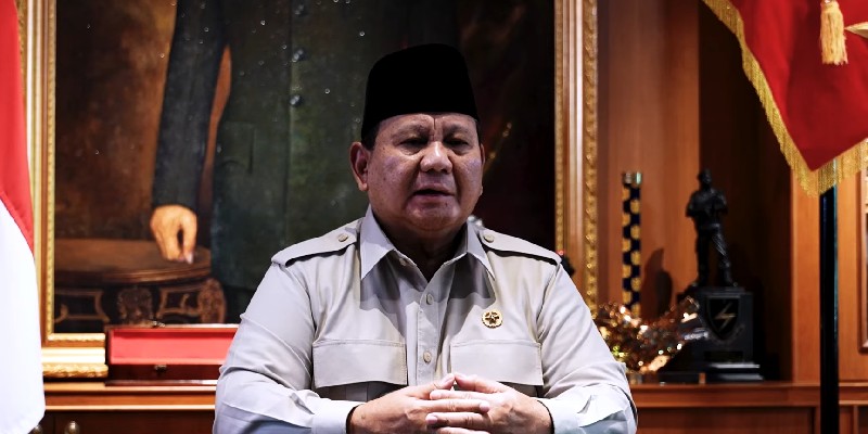 “Saya Prabowo Subianto, Presiden Republik Indonesia atas nama pribadi, keluarga dan atas nama pemerintah Republik Indonesia, mengucapkan selamat Hari Raya Idul Fitri 1447 Hijriah. Mohon maaf lahir batin, minal aidzin walfaidzin," ungkapnya.
