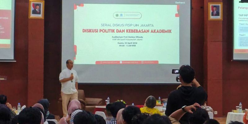 Pandangan itu disampaikan pengamat politik sekaligus pendiri Saiful Mujani Research and Consulting (SMRC), Saiful Mujani dalam 'Diskusi Politik dan Kebebasan Akademik' di UIN Jakarta, Kamis, 23 April 2026.