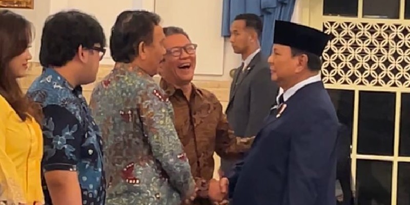 Momen menarik terjadi ketika Prabowo menyalami Rocky. Keduanya terlihat berbincang singkat disertai suasana santai hingga diakhiri dengan fist bump.