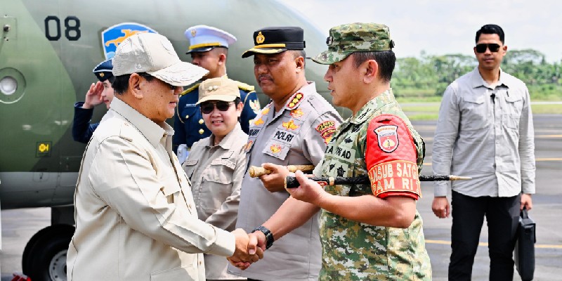 Pesawat yang membawa Prabowo beserta rombongan terbatas tiba di Bandar Udara Tunggul Wulung, Kabupaten Cilacap, pukul 12.07 WIB.