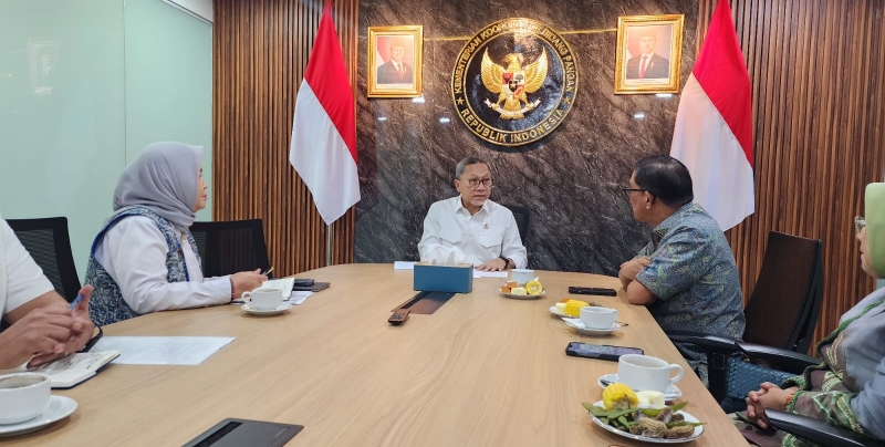 Menko Pangan Zulkifli Hasan (Zulhas), dalam kesempatan audiensi tersebut didampingi oleh Deputi Bidang Koordinasi Keterjangkauan dan Keamanan Pangan Nani Hendiarti.