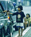Ini misalnya bisa dilihat di perempatan lampu merah Pondok Pinang, Jakarta Selatan. Di tengah terik matahari yang menyengat dan tak luput dari kepulan asap dan debu kendaraan, mereka berkeliaran mencari uang. Seharusnya, mereka bersekolah.
