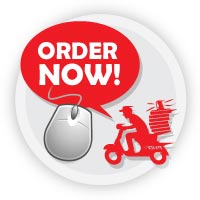 Dari atas motor ia berteriak kepada temannya yang dilokasi bawa paket pizzanya ditolak oleh konsumen Karen pizzanya sudah hancur.