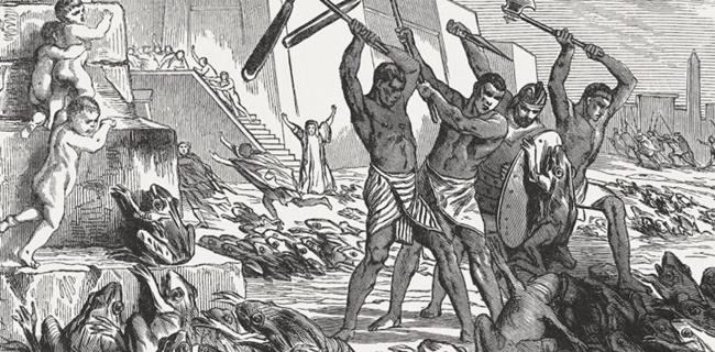 Kutu merangsek ke lipatan pakaian dan seluruh tubuh. Menimbulkan gatal-gatal dan sakit. Darah melimpah di mana-mana. Memenuhi sumur dan sumber air bersih. Semua terkena rembesan darah. Belalang beterbangan menyerang segala macam tanaman. Sehingga gagal panen.