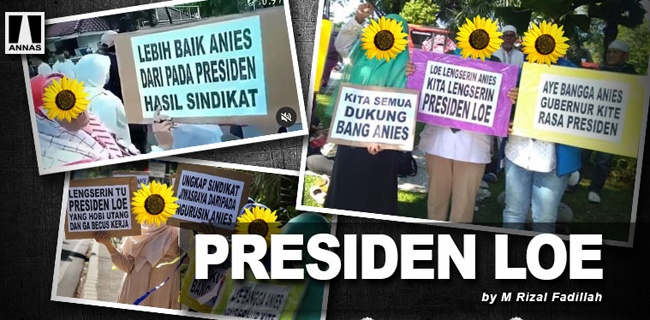 Presiden Loe bukan Presiden kita. Buat emak-emak itu mungkin Anies-lah Gubernur yang "rasa" Presiden. Penyerangan kubu si "Loe" terhadap Anies dianggap sebagai berlebihan akibatnya emak-emak itu mereaksi. Ya ke sana-sini sampai urusan korupsi atau utang luar negeri seperti tulisan "Lebih Baik Banjir Air Masih Aman, Daripada Banjir Korupsi Utang Luar Negeri".