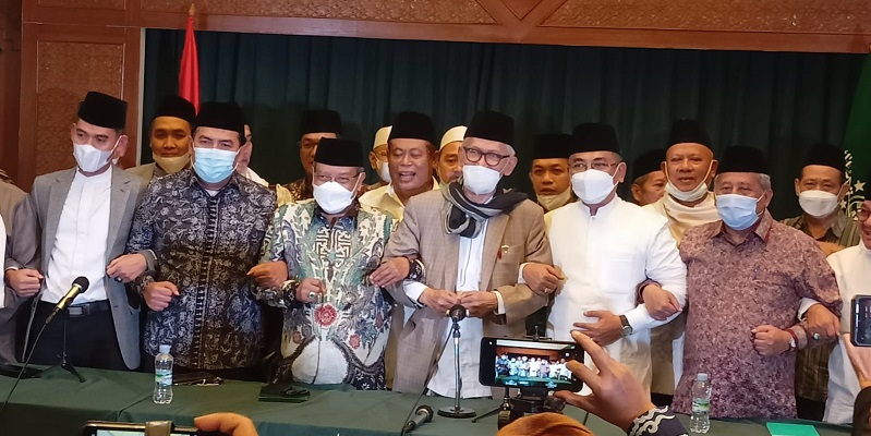 Gandengan tangan KH Miftahul Akhyar dengan KH Said Aqil Siroj serta seluruh fungsionaris PBNU di hadapan PWNU se-Indonesia, memberi pesan bahwa gegeran perkara waktu Muktamar berakhir Gergeran.