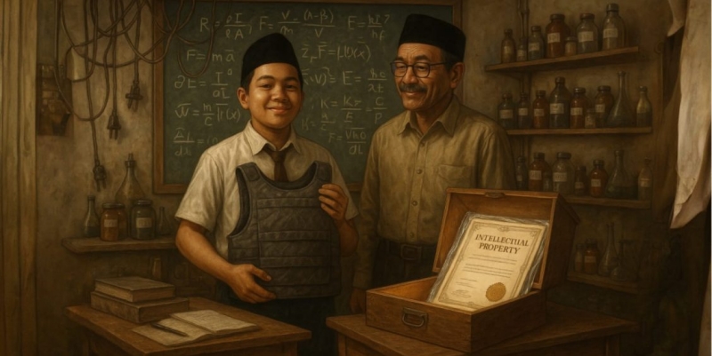 Bayangkan jika skema ini berjalan mulus. Anak Madrasah Technomicro itu tidak lagi menunggu donatur yang tak kunjung datang, tidak lagi memelototi laci untuk memastikan sertifikat KI tidak menjadi sarang cicak. Ia bisa mengajukan KUR berbasis KI, memproduksi jaket anti pelurunya.