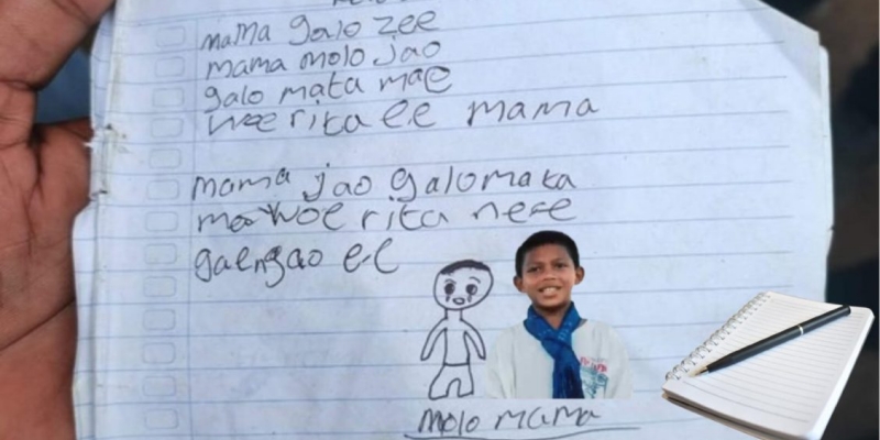 Dengan tanda tangan air mata, ia menulis, “Mama saya pergi dulu. Mama relakan saya pergi. Jangan menangis ya Mama. Mama saya pergi. Tidak perlu Mama menangis dan mencari atau merindukan saya. Selamat tinggal Mama.”