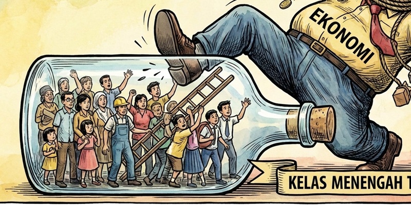 Yaitu, kelompok terdidik lulusan Sekolah Lanjutan Tingkat Atas (SLTA) dan perguruan tinggi (D1-3/S1), masing-masing sebesar 30,85 persen dan 10,2 persen atau 41,05 persen dari total penduduk. Kelompok inilah yang sedang terdesak dan terjebak sebagai kelompok menengah. Selama 10 tahun terakhir, berpotensi lebih banyak turun ke bawah status ekonominya dibanding naik kelas ke atas. Rentan menjadi pemicu instabilitas sosial politik yang merugikan kinerja Presiden RI Prabowo Subianto.