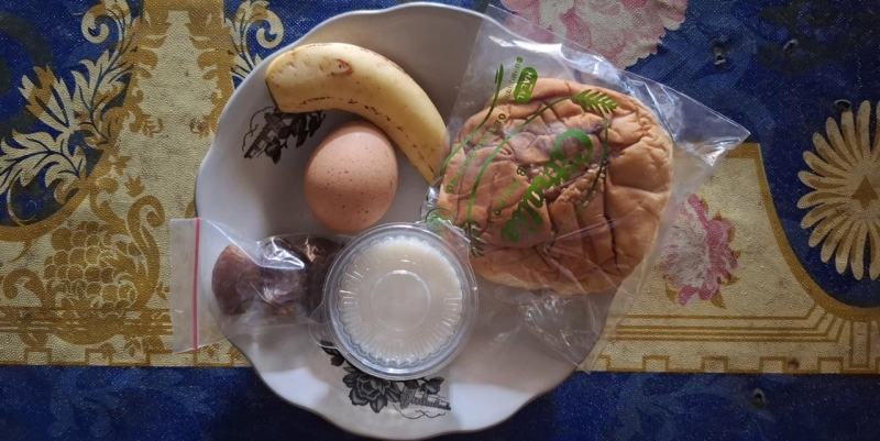 Ada paket dua sampai tiga hari berisi 3 telur rebus, 3 bolu, 3 kurma. Di SMA Negeri 1 Rasau Jaya, siswa menerima setengah tongkol jagung, 5 kurma, 3 kelengkeng, 1 jeruk, 1 piscok, 1 bolu kukus untuk dua hari.