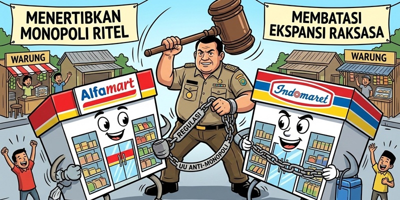 Di belahan dunia manapun, usaha ritel jaringan (chain store) seperti Alfamart dan Indomaret itu dibatasi. Baik itu dibatasi oleh zonasi/wilayah, jumlah outletnya, jam buka, hingga batasan lainya. Usaha toko non jaringan/warung tradisional atau toko satuan (single store) itu dilindungi betul supaya banyak keluarga yang dapat manfaat usaha. Bukan dibiarkan liberal dimangsa yang besar dan kuat dalam permodalan.