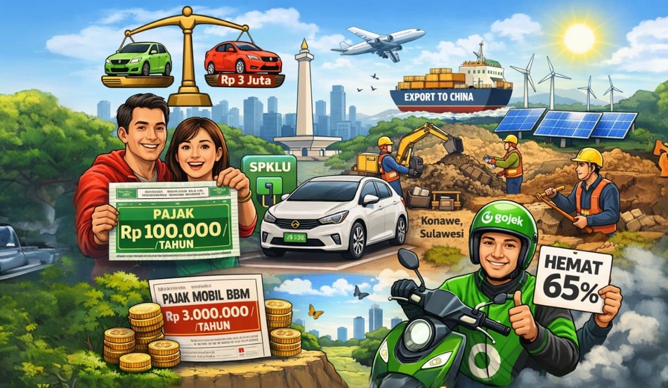 Ironisnya, di saat rakyat masih ragu, negeri ini justru duduk di atas harta karun baterai dunia. Nikel dari Konawe, Sulawesi Tenggara, salah satu bahan utama baterai lithium, digali dari tanah kita, diangkut ke luar negeri, terutama China, lalu kembali lagi ke kita dalam bentuk produk jadi dengan harga yang sudah “berasa internasional.”