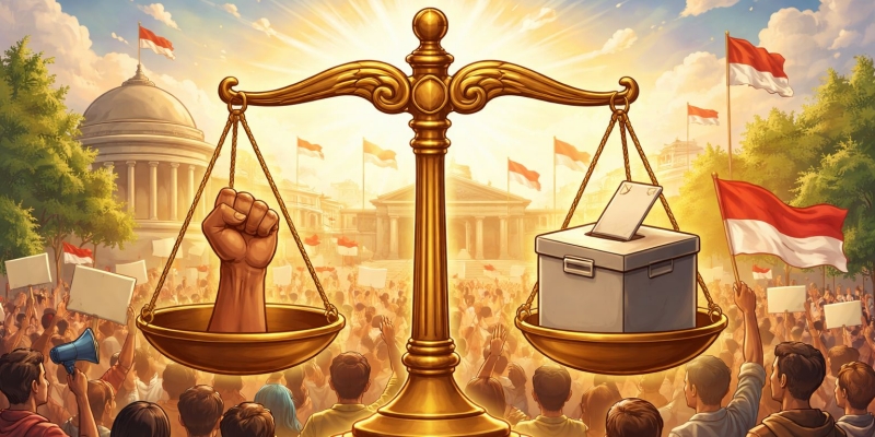 Sementara itu, di Indonesia semangat tersebut diteruskan dengan menekankan pentingnya keadilan sosial yang terbuka dan pluralis, dalam kerangka demokrasi (Madjid, 1987).