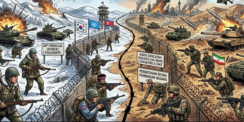 Tapi yang paling menarik adalah skenario bahwa perang AS-Iran ini akan berakhir sama seperti perang antara Korea Utara dan Korea Selatan yang berujung gencatan senjata tanpa batas waktu sejak 1953 hingga saat ini.