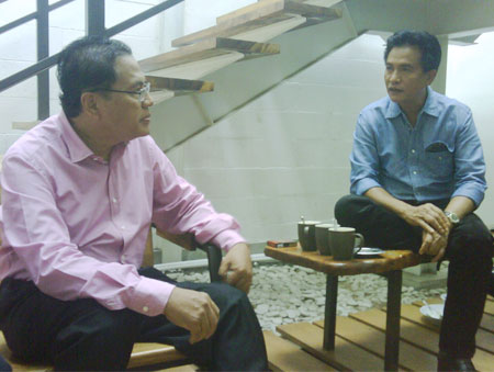 Mantan Menteri Sekretaris Negara Yusril Ihza Mahendra (kanan) menemui ekonom senior Rizal Ramli Rumah Perubahan, Jalan Panglima Polim V, Jakarta Selatan (Minggu siang, 1/8). Di dalam pertemuan itu, Yusril menyampaikan perkembangan kasus sisminbakum yang tengah dihadapinya. [arp]