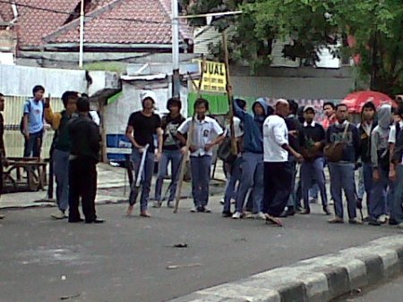 Siswa SMAN 6 dan SMAN 70, terlibat tawuran di kawasan Bulungan, Blok M, Jakarta Selatan (Rabu petang, 5/1). Seorang siswa SMAN 6 mengalami bocor kepala akibat bentrokan. Tawuran antar kedua siswa sekolah sudah sering terjadi dan menimbulkan keresahan warga. FIRARDY ROZI/RMOL