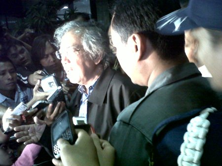 Politisi PDI Perjuangan Panda Nababan menjawab pertanyaan wartawan setelah dirinya resmi ditahan KPK petang ini (Jumat, 28/1) terkait kasus suap pemilihan DGS BI Miranda S Goeltom 2004 lalu. Panda Nababan ditahan di Lembaga Pemasyarakatan Salemba untuk 20 hari ke depan terhitung mulai hari ini. ADE MULYANA/RMOL