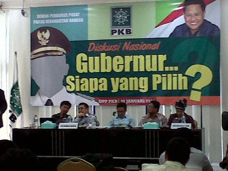 Ketua Umum DPP PKB Muhaimin Iskandar (tengah) membuka diskusi yang digelar kantor PKB Jalan Raden Saleh, Jakarta Pusat hari ini (Minggu, 30/1). Diskusi itu mengambil tema,"Gubernur Siapa yang Pilih?" ADE MULYANA/RMOL