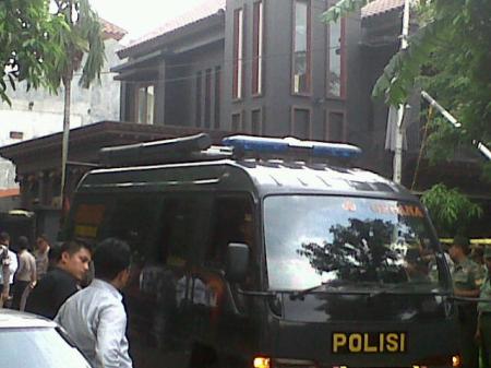Aparat berjaga disekitar kediaman Ahmad Dhani. Ini dilakukan setelah kru Republik Cinta Manajemen (RCM) menemukan bom berbentuk buku yang akan ditujukan kepada Ahmad Dhani. FIRARDI ROZY/RMOL