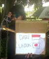 Benaya mengaku bersyukur karena aksi solidaritas yang dilakukannya sampai siang ini, sudah berhasil mengumpulkan sebesar Rp5 juta. "Kita terima dalam bentuk dolar, rupiah, maupun yen," katanya lagi.