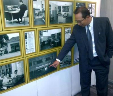 Presiden Direktur IBM, Suryo Suwignjo di Kantor Pusat IBM Jakarta. Dengan semangat, Suryo Suwignjo, (Kamis, 16/06), menunjuk salah satu foto masa lalu tentang sejarah perjalanan panjang IBM berkiprah di Indonesia. Tahun ini IBM memasuki usia satu abad. [DAR EDI YOGA/RMOL]