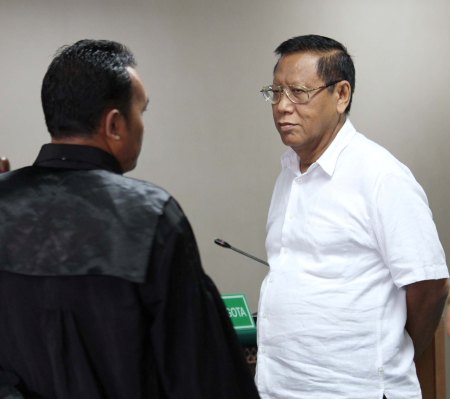 RMOL. Mantan Sekretaris Menteri Koordinator Bidang Kesejahteraan Rakyat era Aburizal Bakrie, Sutedjo Joewono tengah menatap Jaksa Penuntut Umum KPK di Pengadilan Tipikor, Jakarta (Selasa 21/6). JPU menghadirkan 7 orang saksi untuk dimintai keterangan terkait kasus dugaan korupsi proyek pengadaan Alat Kesehatan (Alkes) pada rumah sakit rujukan untuk penanganan flu burung pada 2006 di kawasan timur Indonesia tahun 2006. [TEDY KROEN/RM]