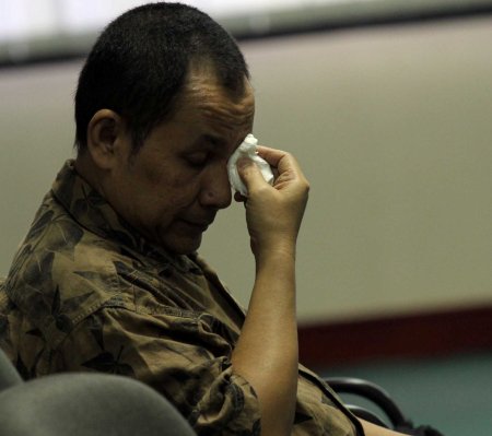 RMOL. Terdakwa korupsi pengadaan mesin jahit Musfar Aziz sesaat setelah membaca pledoinya di depan Majelis Hakim, Tipikor, Jakarta (Kamis (30/6). Dalam Pledoinya, Direktur PT Ladang Sutera Indonesia (PT Lasindo) itu minta dibebaskan. Ia menegakan tak bisa mengembalikan uang korupsi sebesar Rp 19,951 miliar karena dirinya telah jatuh miskin. [TEDY KROEN/RM]