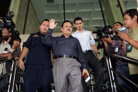 Tersangka kasus korupsi Amrun Daulay meninggalkan Gedung Komisi Pemberantasan Korupsi (KPK), Jakarta, Kamis (25/8), usai menandatangani berkas. Berkas perkara kasus korupsi pengadaan sarung, mesin jahit, dan sapi di Departemen Sosial 2004-2008 yang juga melibatkan mantan Menteri Sosial Bachtiar Chamsyah diduga merugikan negara sebesar Rp33,7 miliar itu dinyatakan P21 dan siap disidangkan usai Lebaran. Amrun saat ini menjabat sebagai anggota DPR Fraksi Demokrat.