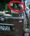 Foto yang beredar melalui internet dan BlackBerry Messenger (BBM) itu memperlihatkan kondisi mobil Toyota Avanza bernopol B 1843 UFU yang ringsek sisi pintu kanannya. Pada bagian tengah mobil di belakang jok depan, terlihat sosok yang jika gambar diperbesar sepintas tampak siluet wajah perempuan berjilbab.